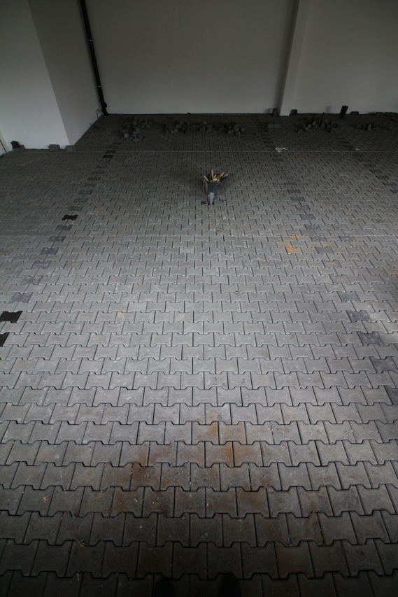 Verlegung des Pflasters in der Fahrzeughalle am 01. September 2015
